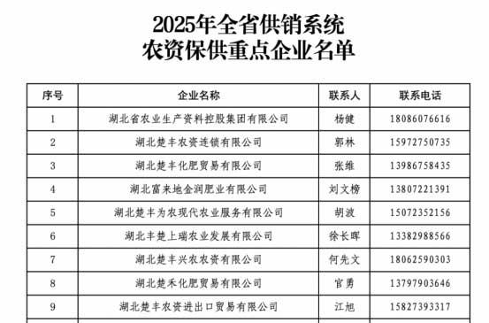 近日,中國農(nóng)資流通協(xié)會、湖北省供銷合作總社相繼公布了2025年農(nóng)資保供重點企業(yè)名單。農(nóng)資控股集團及旗下9家企業(yè)入選“2025年中國農(nóng)資流通協(xié)會春耕保供重點農(nóng)資企業(yè)名單”,集團及旗下8家企業(yè)入選湖北省“2025年全省供銷系統(tǒng)農(nóng)資保供重點企業(yè)名單”。