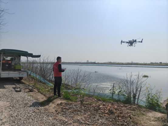 在監(jiān)利市汪橋鎮(zhèn)唐家灣村,蝦稻共作是當(dāng)?shù)靥厣r(nóng)業(yè)產(chǎn)業(yè)之一,當(dāng)下正值蝦稻田滅螺工作關(guān)鍵期,楚豐為農(nóng)公司業(yè)務(wù)員薛彪在了解相關(guān)情況后,及時(shí)為當(dāng)?shù)剞r(nóng)戶提供“水上飛防”服務(wù)?!耙郧叭斯ご蛩?,一畝田要花大半天時(shí)間,現(xiàn)在用上高科技,幾分鐘就搞定了!”