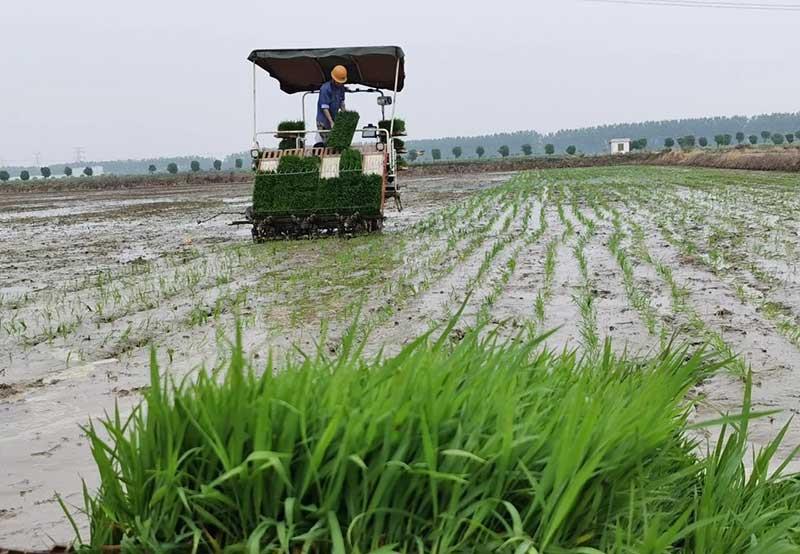 在松滋基地內(nèi),5臺插秧機(jī)伴隨著隆隆的機(jī)器轟鳴,在連片的農(nóng)田中來回穿梭,以每小時5畝的速度高效栽插,2天便可完成基地500畝再生稻插秧作業(yè),較傳統(tǒng)人工插秧效率提升超15倍,人工成本大幅降低。同時,機(jī)器作業(yè)嚴(yán)格將秧苗行距、株距、深度誤差控制在1厘米內(nèi),確保插秧更整齊、栽插深度更精準(zhǔn),有利于秧苗的生長和產(chǎn)量提高。